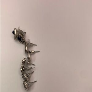 Silver Tone and Blue Spiral Earring Bundle with Vintage Finish