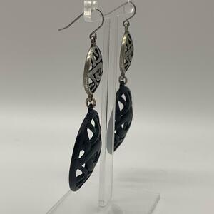 Silver Tone and Matte Black Dangle Pierced Earrings Open Design. In excellent pre-owned condition. See photos for details on condition and measurements.