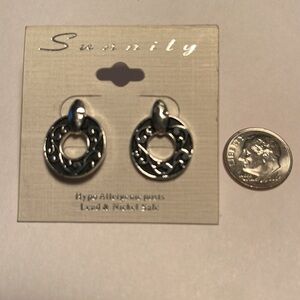 New on card - Sunnity Silver Tone Stud Earrings with black on circle - Hypo Allergenic Posts - Lead and Nickel Safe