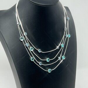 Silver Tone with Turquoise Blue Colored Crystals 4 Strand Chain Necklace