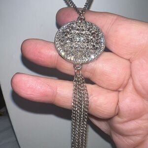 Silver Tone with Filigree and Crystal Tassel Necklace