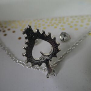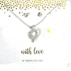 Silver Tone Open Heart Stylized Pendant Necklace Stud Earrings Rhinestone Jewels