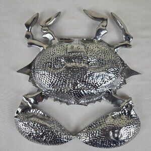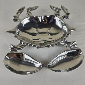 Silver Toned Aluminum Alloy Sea Life Crab Divided Serving Dish Fun Whimsical