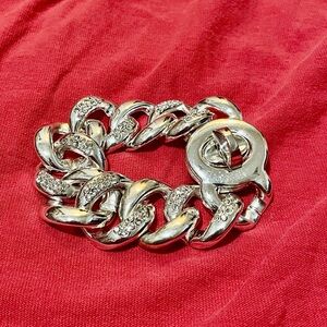 This stunning silver bracelet features sparkling crystal accents, perfect for adding a touch of elegance to any outfit. #link #crystals #slivertone