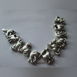 Silver Toned Cat Kitten Bracelet Figúralo Different Poses