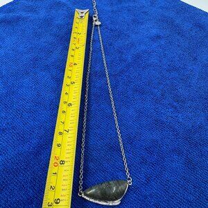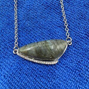 Silver Toned Chain Necklace W/Labradorite Pendant & Rhinestone Accent Chic