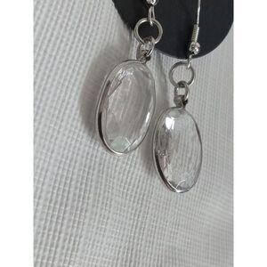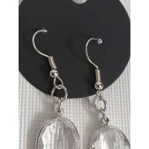 Silver Toned & Clear Oval Shaped Lightweight Dangle Drop Style Fashion Earrings