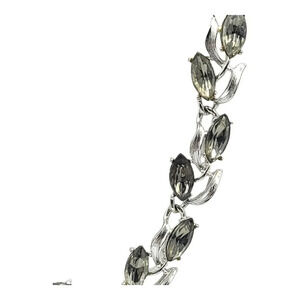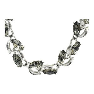 Silver Toned Floral Leaf Gray Rhinestone Adjustable Choker Necklace Vintage