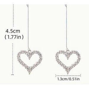 Elegant and lightweight, these silver toned heart drop earrings feature sparkling rhinestones for a refined touch. Ideal for both casual and formal settings.