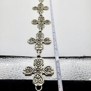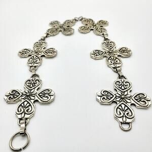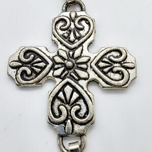 Silver Toned Heavyweight Cross Plate Engraved Medieval Chain-link Scrap Jewelry