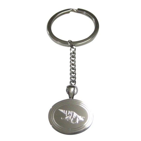 Silver Toned Oval Etched Sea Shell Pendant Keychain