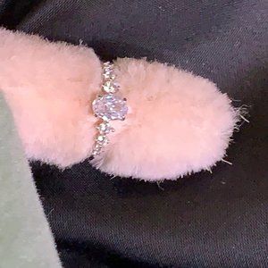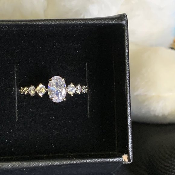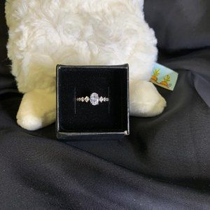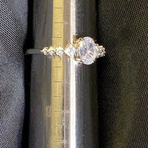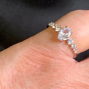 Silver Toned Ring with Oval Clear Stones With Eight Smaller Stones