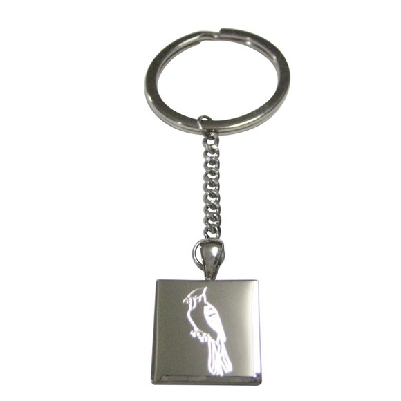 Silver Toned Square Etched Blue Jay Bird Pendant Keychain