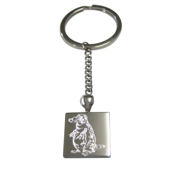 Silver Toned Square Etched Duck Billed Platypus Pendant Keychain