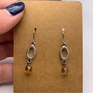 Silver Toned Swirl Oval Knot Dangle Earrings With Amber Colored Bead