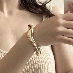 Silver Toned Women's Abstract Asymmetrical Open Bangle Top Rated!