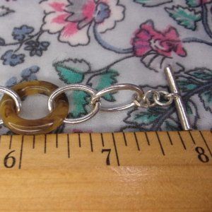 Silver plated bracelet with faux tortoise shell round links, about 8" long, unknown maker, nice condition, pretty.