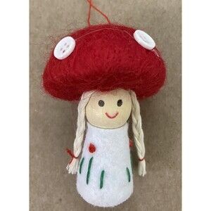 Silver Tree Mushroom Girl Felted 3 inch Christmas Ornament NWT 2021