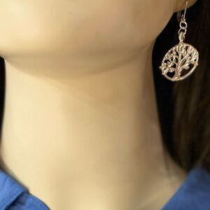 NEW Silver Hanging Tree of Life Earrings Jewerly. Pierced ears with clip closure. Hanging style, oblong shape.