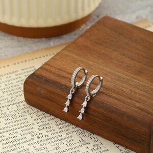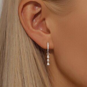 Silver Trendy Hoop Huggie Dainty Drop Dangle E312 Earrings Jewelry for Women