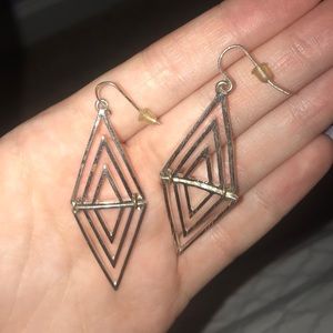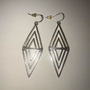 Dangly silver earrings with triangle shapes forming a diamond shape. ❗️These earrings have a matching GOLD pair which can be bundled together for a discounted price❗️