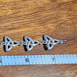 Solvar Irish Jewlery. Celtic bracelet, 925 sterling silver trinity knot with fishhook clasp. About 7.5 inches long.