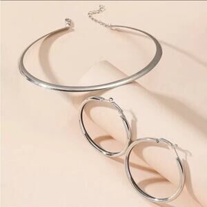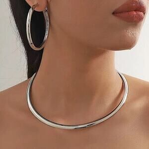 Silver Tube Collar Torques Choker Earrings Hoop Matching Set