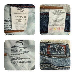 Silver Tuesday 22 Jeans Women 25 Low Rise Y2K Flare Distressed Embroidered 28x31