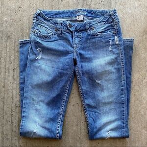 Silver | Tuesday Light Wash Distressed Denim Bootcut Jeans 27
