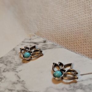This stunning jewelry set features vibrant turquoise and red beads, perfect for adding a pop of color to any outfit. Earrings are lotus shaped. The elegant design is complemented by silver flower accents, making it a versatile addition to your collection.