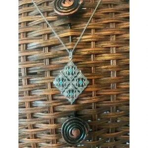 Silver Tone Turquoise Blue accents Intricate filigree design Pendant Necklace