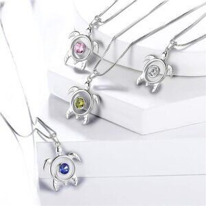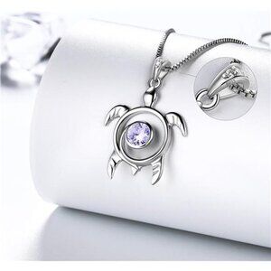 - **Design**: Features a beautifully detailed sea turtle pendant with a circular frame and a stunning lavender gemstone at the center.