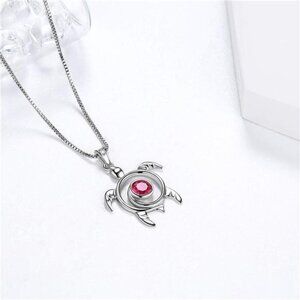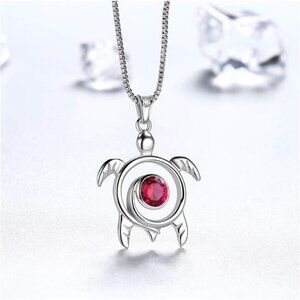 - **Design**: Features an intricately detailed sea turtle pendant with a circular frame and a radiant red gemstone as the centerpiece.