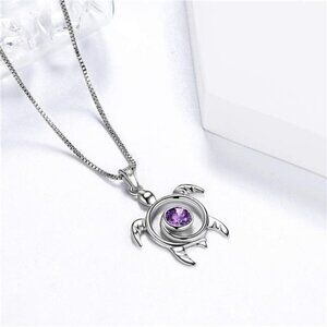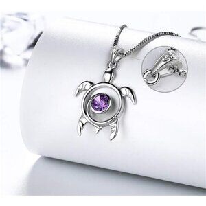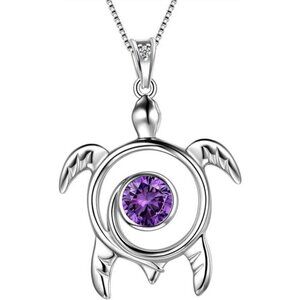 - **Design**: Features a beautifully detailed sea turtle motif with a circular frame and a radiant purple stone as the centerpiece.