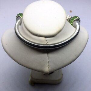 Silver Twist Bracelet with Green Glow in the Dark Beads and Crystal Flower Charm