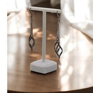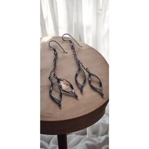 Elegant silver earrings featuring a unique design with intertwined metal shapes. The beautiful vintage patina adds depth and character, giving them a sophisticated, timeless look. Perfect for adding a refined touch to any outfit, these lightweight earrings are versatile for both casual and formal occasions.