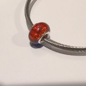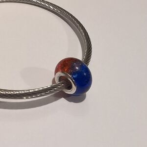Silver Two Tone "Crushed Glass" Blue and Orange Charm for Pandora Style Bracelet