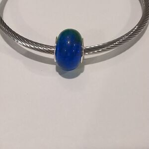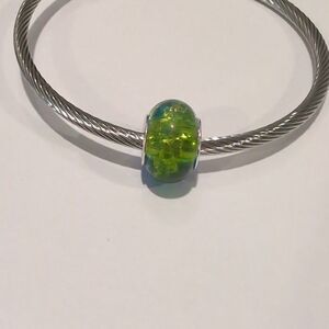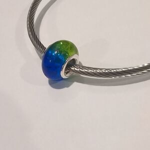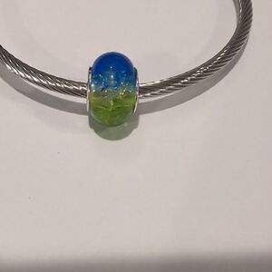 Silver Two Tone Green and Blue Charm for Pandora Style Bracelet