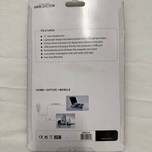 Compact USB LED light with flexible arm. Ideal for tablets and laptops. Simple plug-and-play design.
