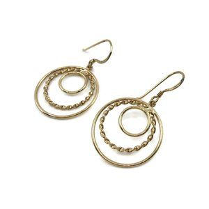 Nice pair of sterling vermeil earrings that consist of three circles one inside the other. The middle ring is a twisted rope design. A simple but eye catching geometric style. These will be nice for day time or night time.