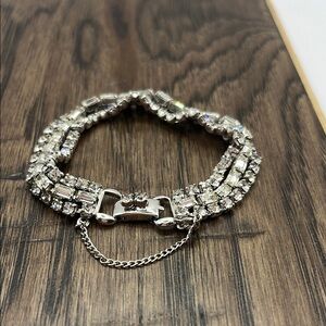 Silver Vintage Clear Rhinestone Bracelet with Safety Clasp Mid Modern