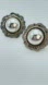 ⧫ This earring set is .925 sterling silver and shaped like a Mexican flower. The flower has a gold/brass colored rope band that circles the rounded 3D Navajo domed center.