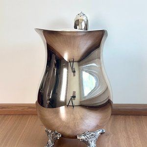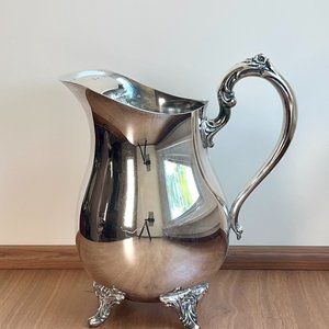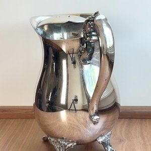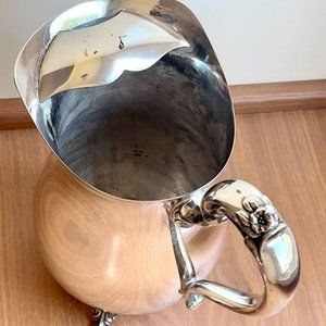 Decorative vintage silver water pitcher. There are no markings, but I believe it's silver plate. In excellent condition, though photos were taken immediately after polishing, and item may need another polish upon delivery.