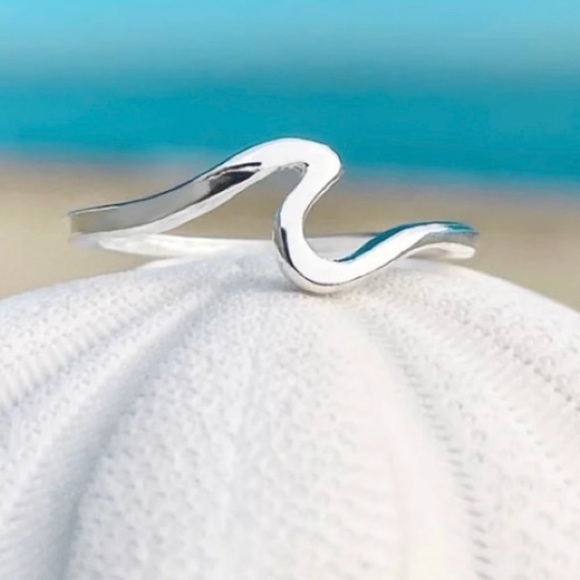 Dainty silver wave ring. Size 8 Perfect for any outfit! Silver metallic over alloy