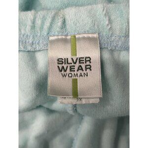 Silver Wear Light Blue Terrycloth Lounge Set Henley Top Elastic Waist Shorts