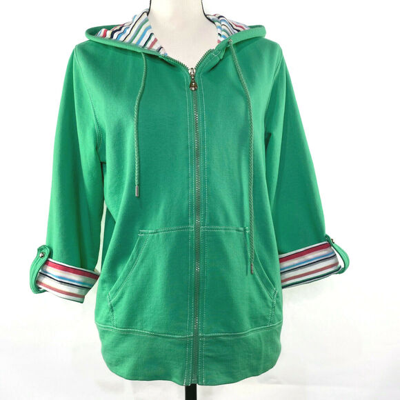 Silverwear New York Ladies Lightweight Zip Up Jacket Green 3/4 Sleeves (roll up) Size Large