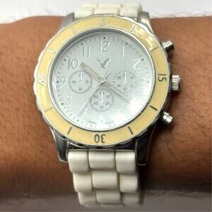 Silver & White American Eagle Men's Watch. Fully functional with brand new batteries. Adjustable band fits 7 1/2 in wrist or near.