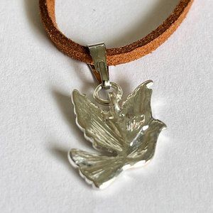 Silver White Dove Bird Pendant Necklace Plated 18-19" Enamel Holy Spirit Peace