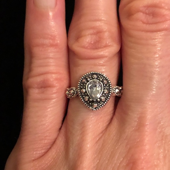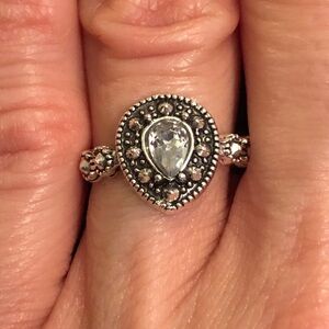 Beautiful silver and white rhinestone fashion jewelry ring. A lovely ring to complement any outfit.