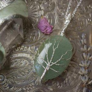 NEW - By Tamed Wild - Tree of Life Necklace is made using a Green Aventrine Stone. The stone is wire wrapped in silver plated copper and comes on an 15 inch sterling silver chain.